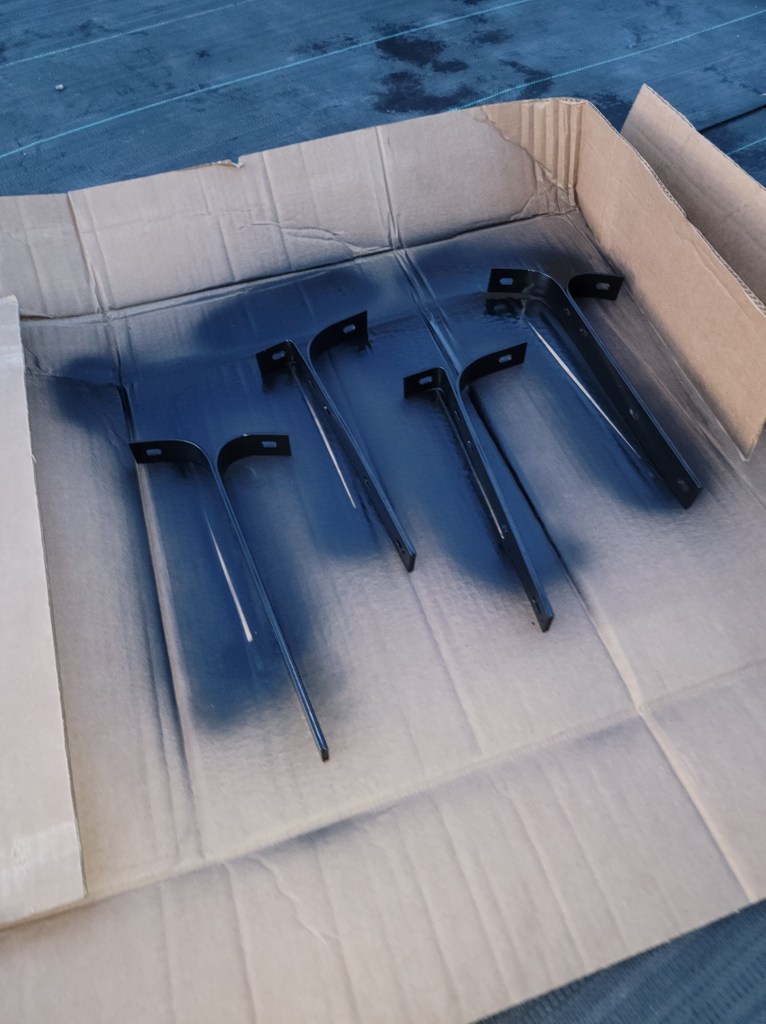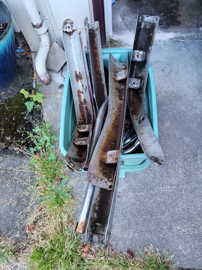 I found time to disassemble the bumpers, treat the rust, and get some painting done. Hopefully I can get the bumpers reassembled soon.