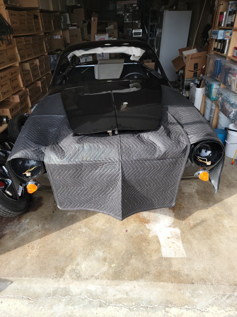 I purchased some moving blankets to protect the paint while working on the Ghia. $5 at Harbor Freight.