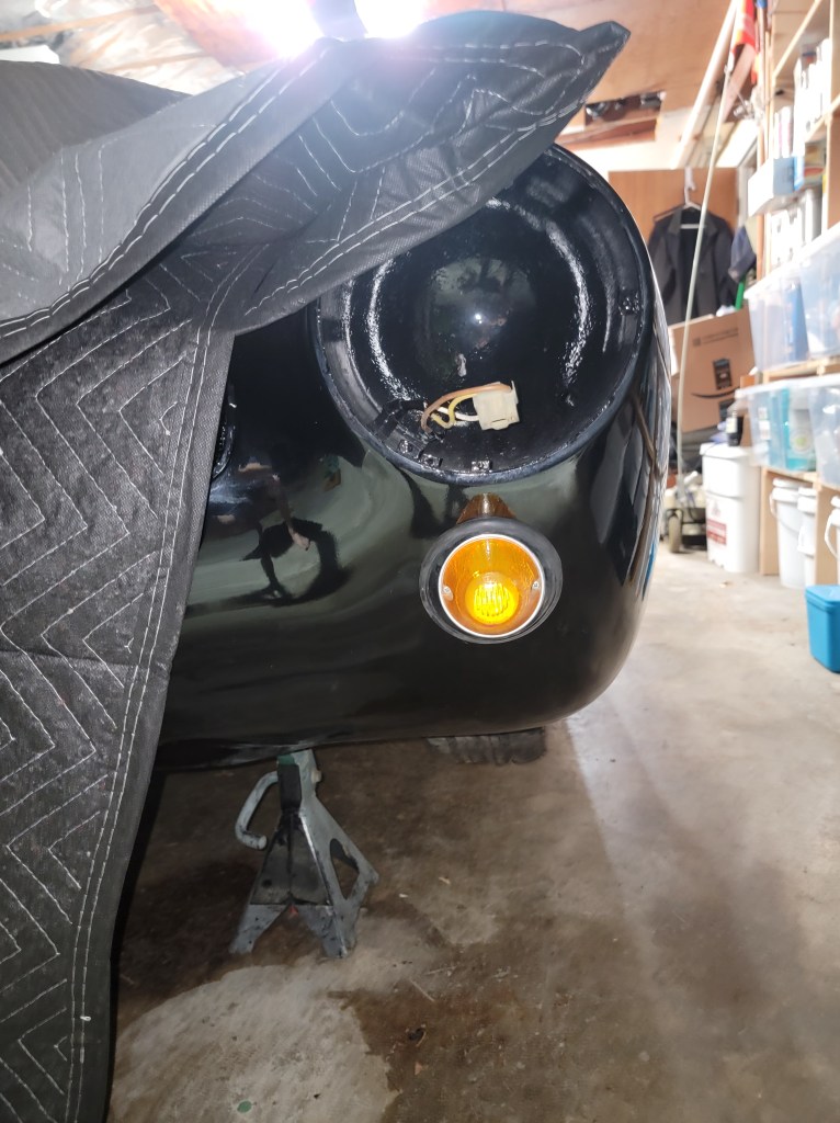 I have installed new rubber seals and the housing and lenses for both. The amber indicator lenses will be replaced with clear lenses and amber bulbs.